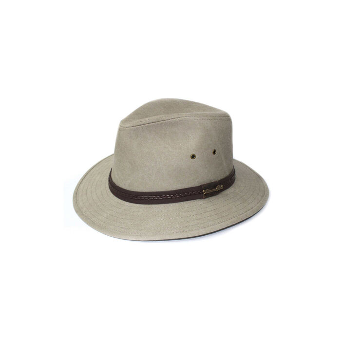 Braided hatband, metal eyelets for breathability and ventilation, lined crown, showerproof, Thomas Cook metal logo pin