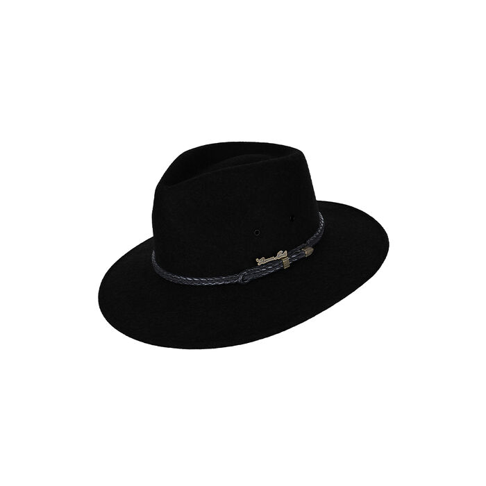 Detachable feathers, braided hatband, eyelets for breathability, fully lined crown, leather sweatband, shower proof, can be crushed, Thomas Cook metal logo pin
