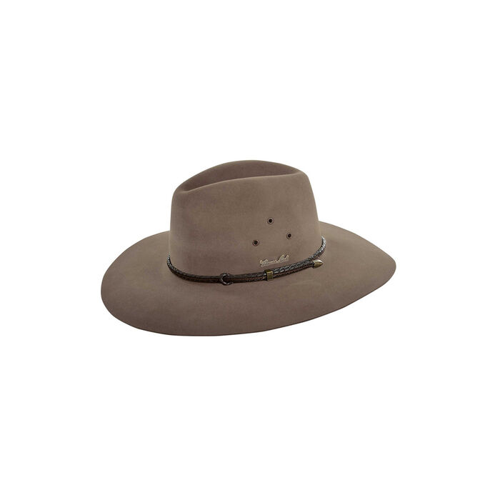 Premium pure rabbit fur felt, detachable feather, fully lined crown, brass eyelets for breathability, leather sweatband, showerproof, Thomas Cook metal logo pin