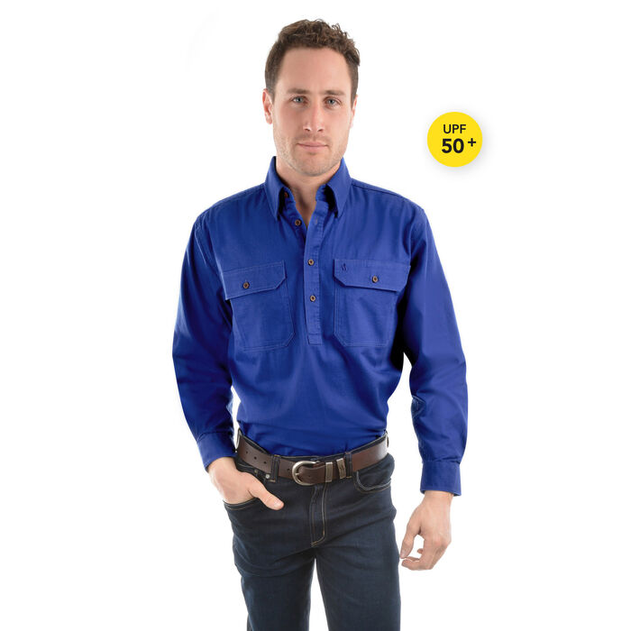 Steel Blue Heavy Drill L/Sleeve Shirt Half Placket - XXS-4XL