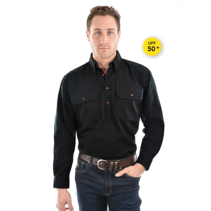 Black Drill LSleeve Shirt Half Placket XXS 4XL