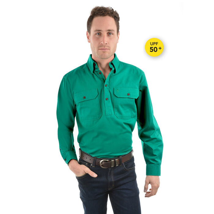 Ivy Green Drill LSleeve Shirt Half Placket XXS 4XL