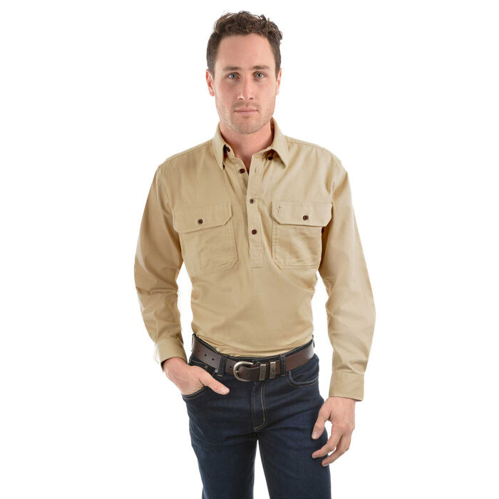 Unisex Heavy Cotton Drill L/Sleeve Shirt Half Placket